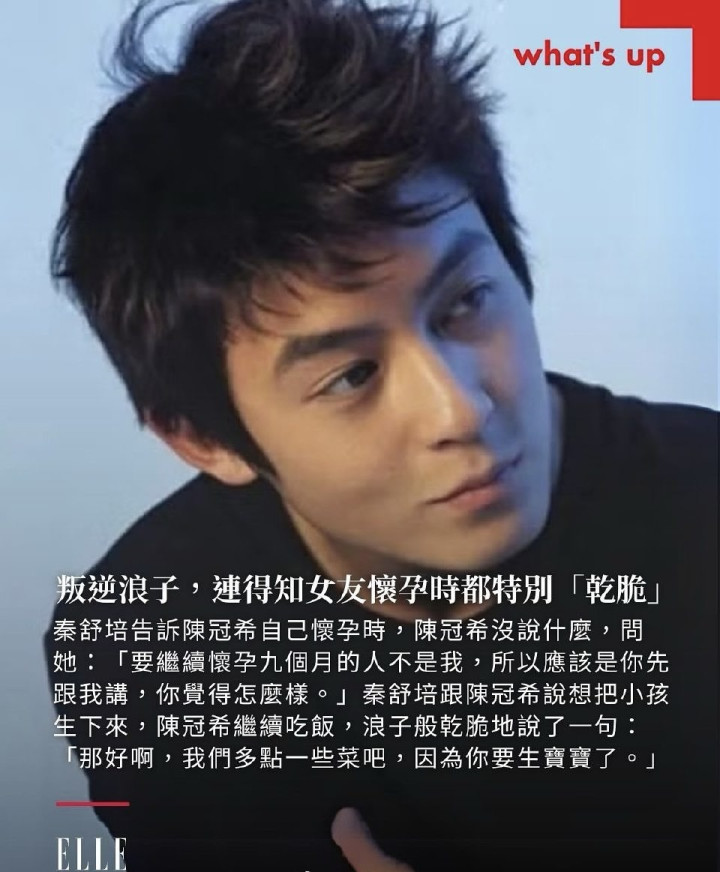 陈冠希在台版《ELLE》回应在得知秦舒培怀孕时的反应